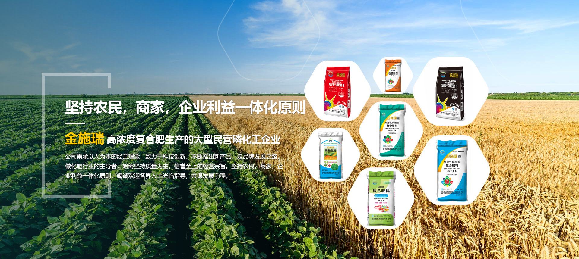 湖北金施瑞肥業(yè)有限公司是一家以生產(chǎn)高濃度復合肥為主導產(chǎn)品的大型民營磷化工企業(yè),在湖北、河南等地均建有大型的現(xiàn)代化生產(chǎn)基地。根據(jù)各地的土壤情況不同由本公司專業(yè)的研發(fā)機構專門為各地區(qū)研制不同配方的化肥,真正做到測土配方施肥。